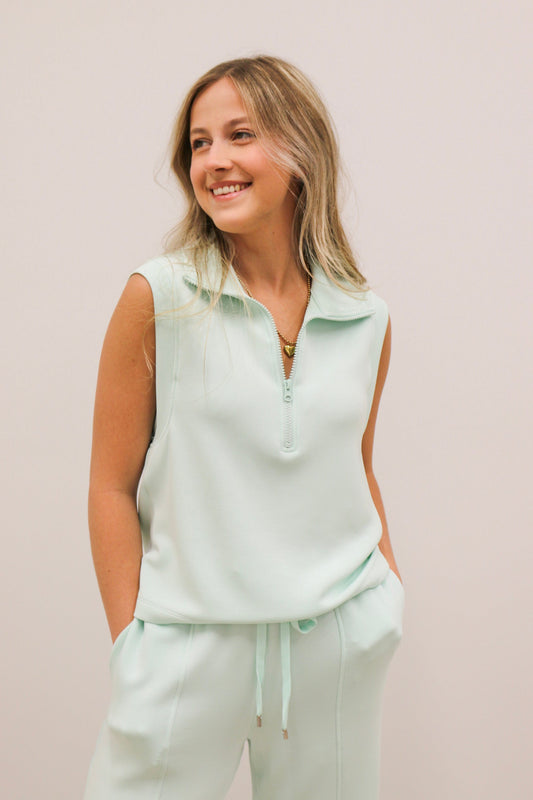Soft Modal Athleisure Sleeveless Half Zip Top - Ice Mint