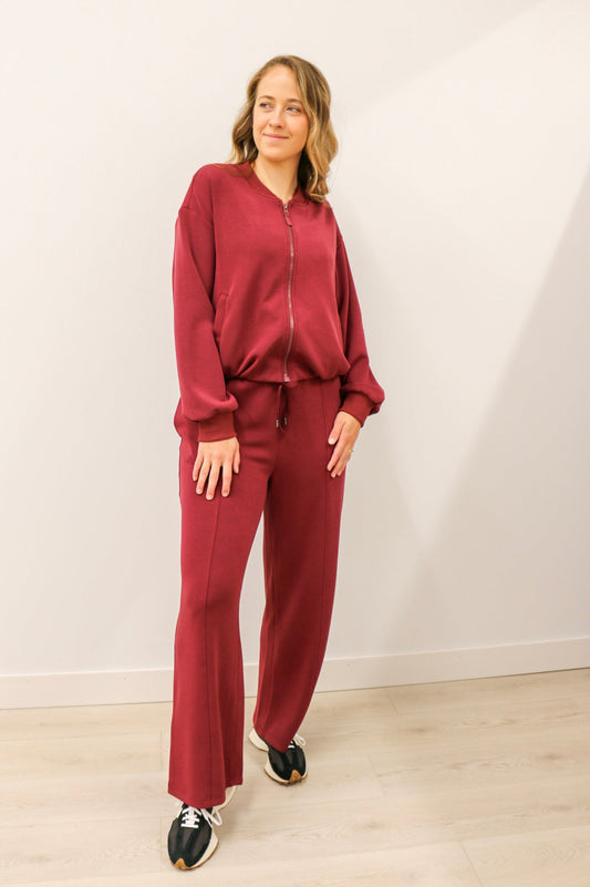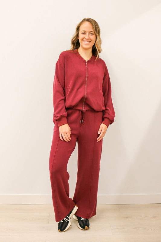 Soft Modal Athleisure Wide Leg Drawstring Pant - Burgundy
