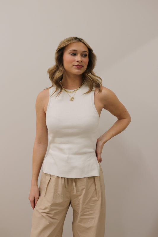 Final Touch Double Layer Square Neck Sleeveless Knit Tank - White