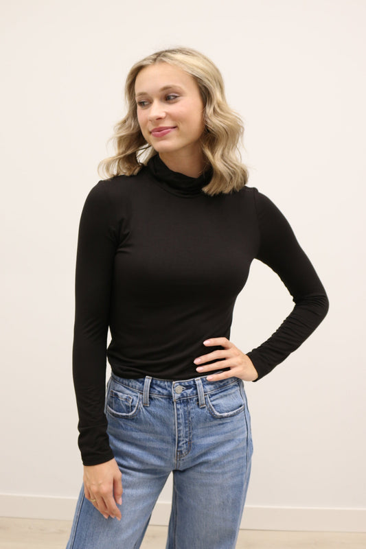 Final Touch Double Layer Turtleneck Long Sleeve Knit Top - Black