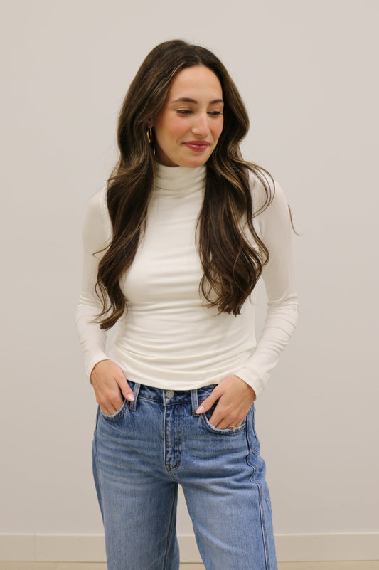 Final Touch Double Layer Turtleneck Long Sleeve Knit Top - Ivory Cream