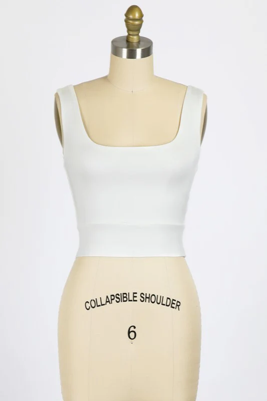 Final Touch Double Layer Square Neckline Crop Knit Tank - White