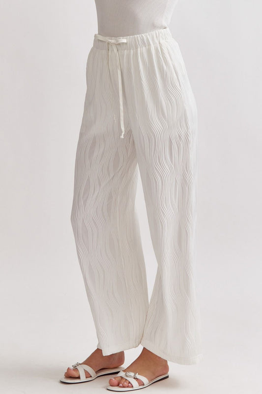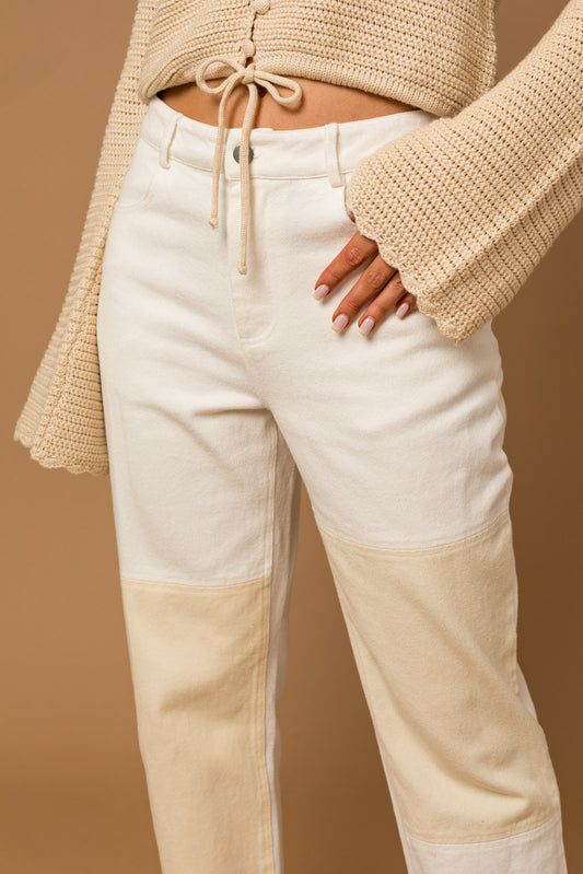 Lane High Waisted Color Block Twill Pants - White, Tan