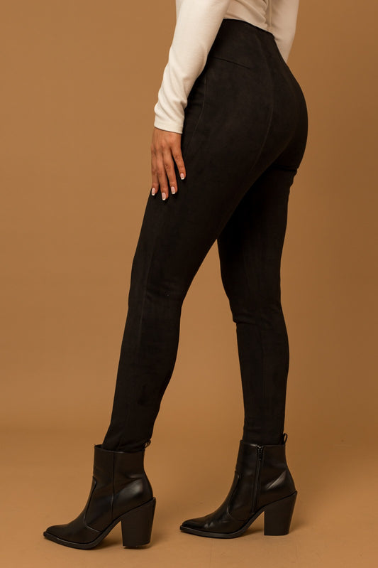 Ellen Wide Leg Drawstring Coated Leather Pant - Black