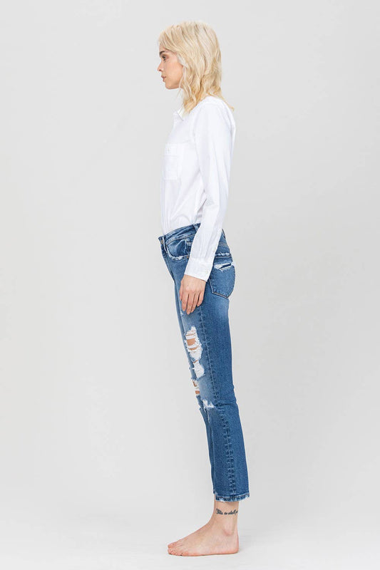 Emma High Waisted Denim Distressed Cuffed Mom Jean
