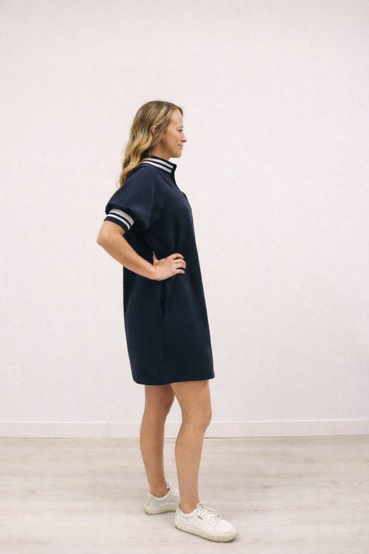 Gwen Short Sleeve Sporty Stripe Knit Mini Dress - Navy Multi