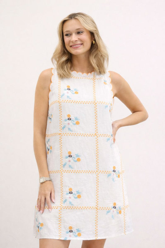 Constance Floral Embroidered Sleeveless Mini Dress - Off White Multi