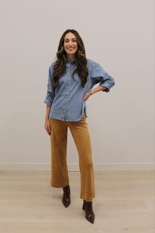 Lana Suede High Waisted Wide Leg Pants - Camel Brown