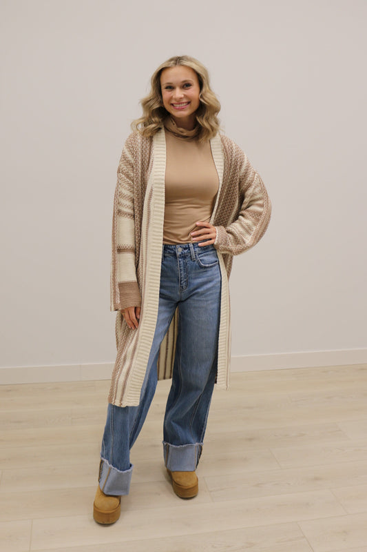 Morgan Long Sleeve Open Front Maxi Cardigan - Mocha