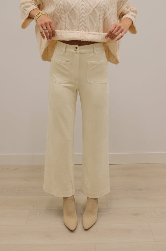 Lana Suede High Waisted Wide Leg Pants - Cream