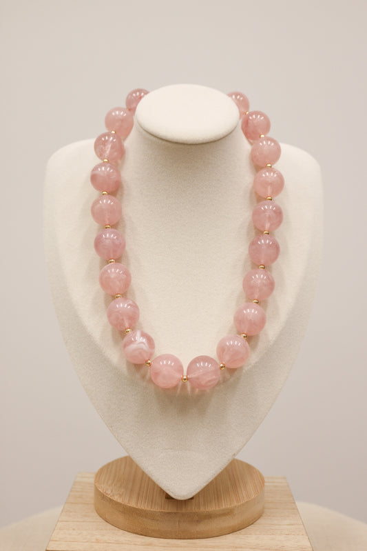 Lolita Beaded Natural Stone Statement Necklace - Light Pink