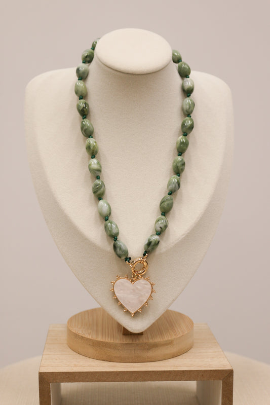Julia Beaded Natural Stone Heart Pendant Necklace - Green