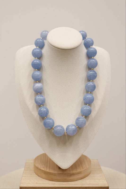 Lolita Beaded Natural Stone Statement Necklace - Light Blue