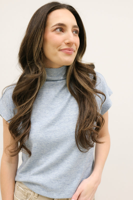 Beckett Mock Neck Short Sleeve Knit Pullover - Light Blue