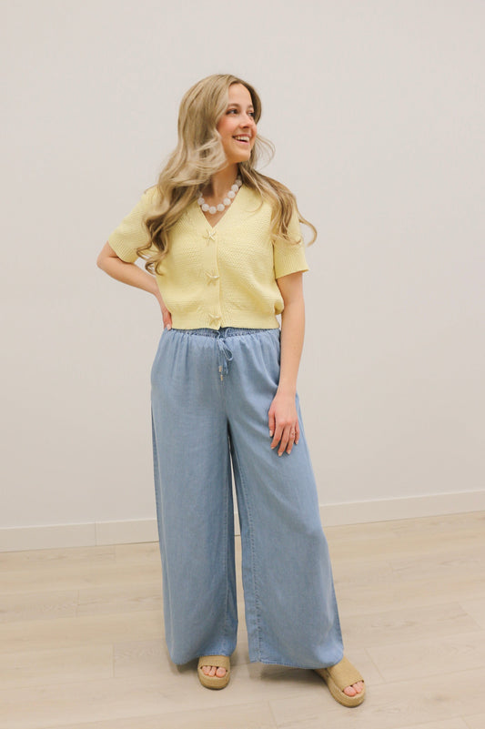 Lucia High Waisted Wide Leg Chambray Pants - Blue