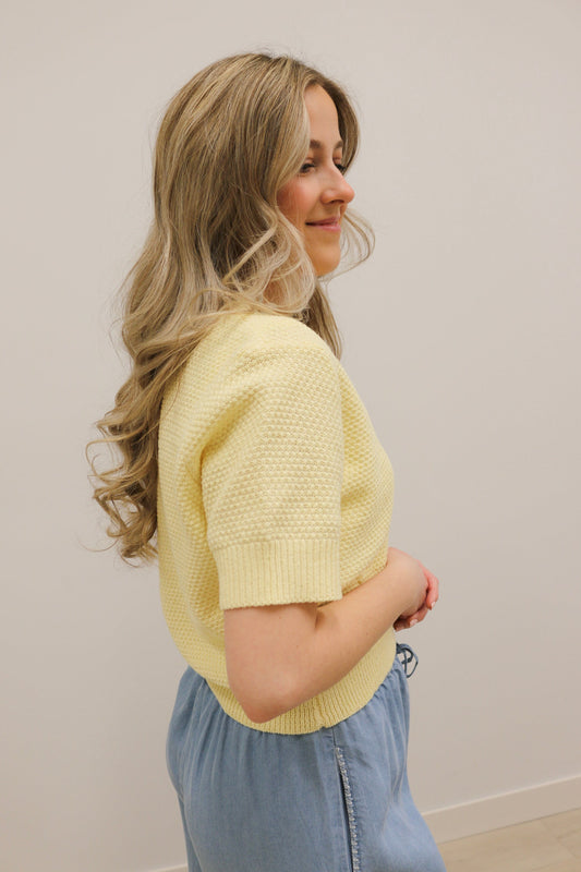 Coastal Starfish Button Short Sleeve Cardigan - Pale Yellow