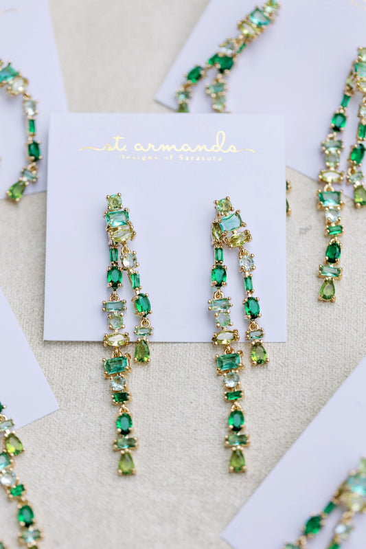 Ombre Crystal Layered Duster Statement Earrings - Green Tone