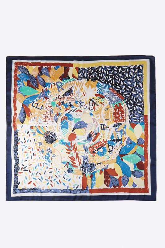 Abstract Leaf Print Silky Square Bandana Scarf - Navy Multi