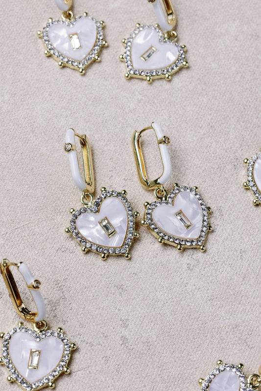 Capri Heart Shaped Diamond Stud Drop Earrings - Mother of Pearl