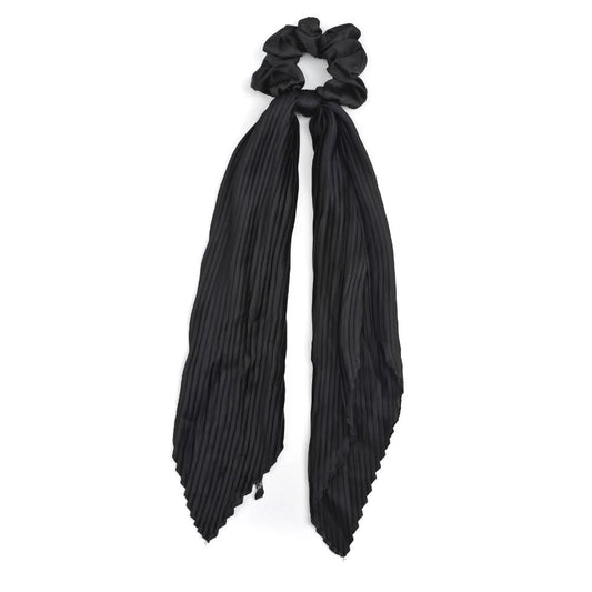 Pleated Scarf Hair Scrunchie - Black