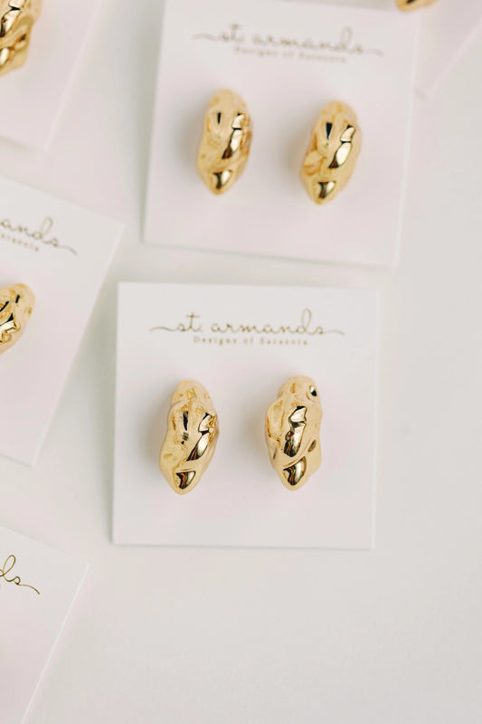 Gold Vintage Style Crumpled Huggie Hoop Earrings