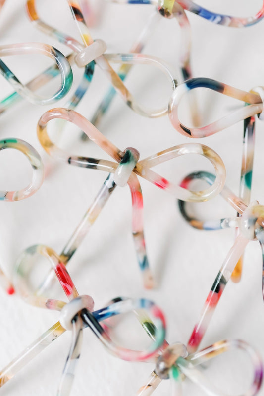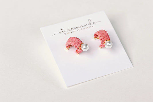 Mini Raffia and Pearl Huggie Hoop Earrings - Pink