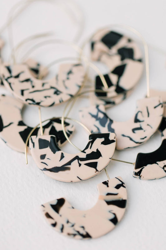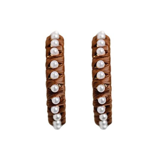 Studded Pearl Raffia Statement Hoop Earrings - Dark Brown