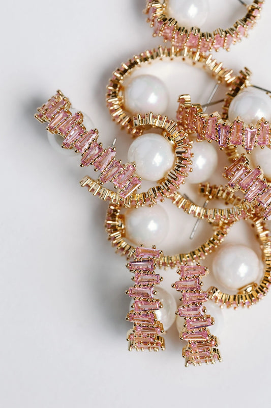 Rhinestone and Pearl Hoop Statement Earrings - Rose Pink