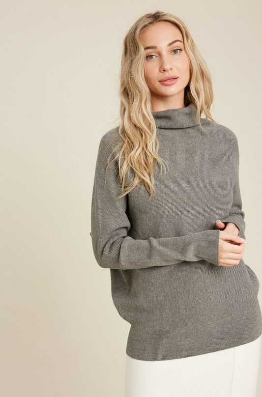 Chloe Long Sleeve Dolman Pullover Sweater - Dark Grey