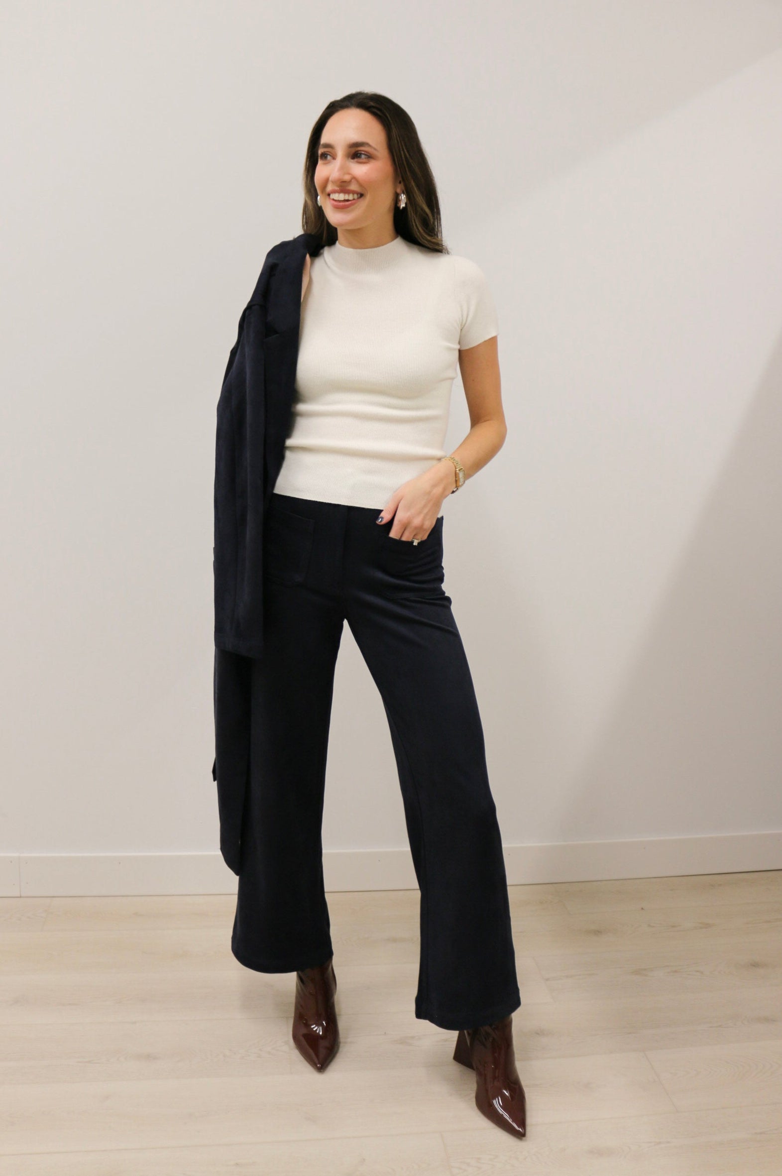 Timeless, versatile, and effortlessly polished—the Aura Sweater Top is your go-to layer for transitional dressing. Crafted from a lightweight, stretchy knit, it features a refined short sleeve silhouette and a subtle mock neckline for just the right touch of structure. Whether worn on its own or layered under blazers, cardigans, or jackets, Aura delivers elevated simplicity with everyday ease.