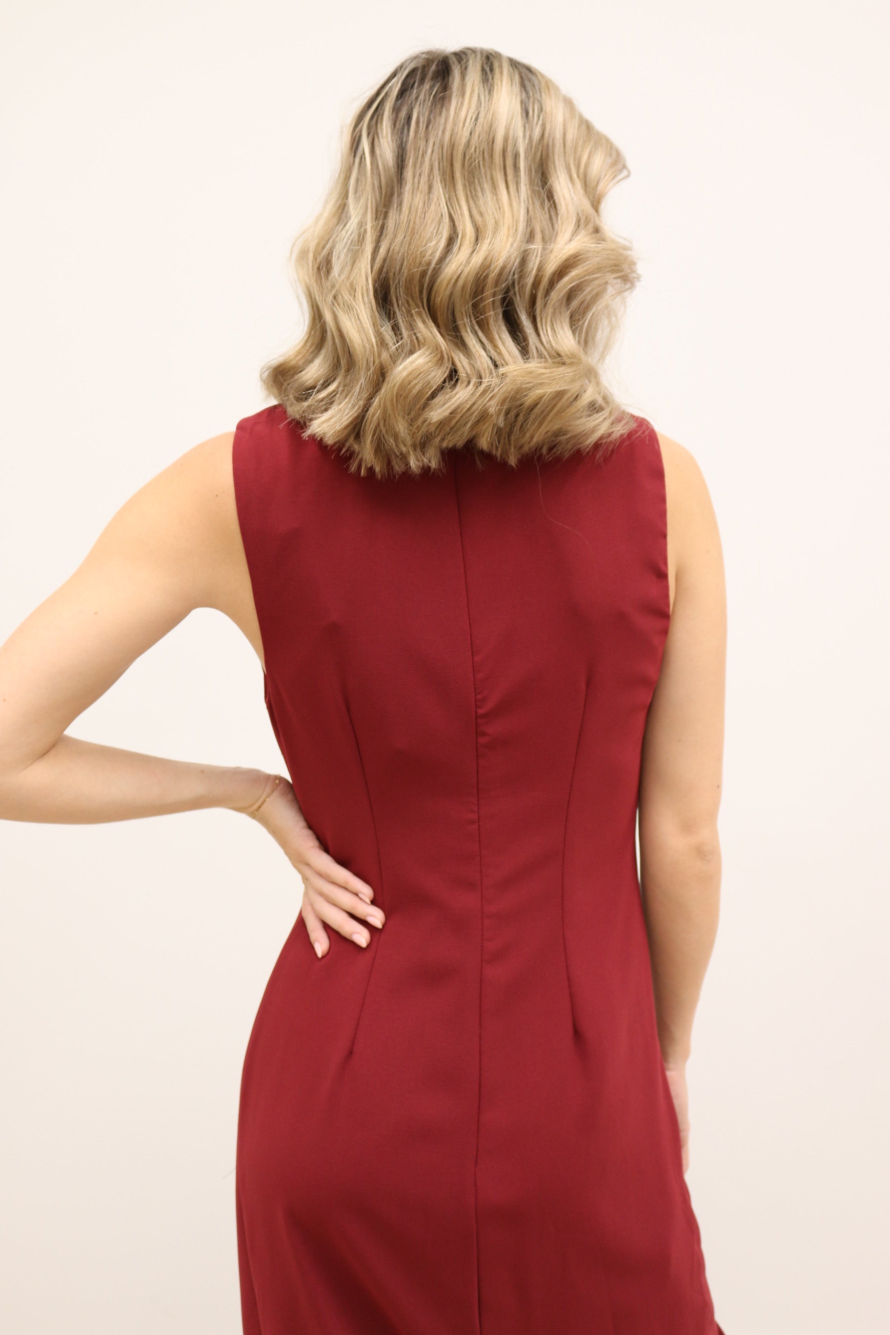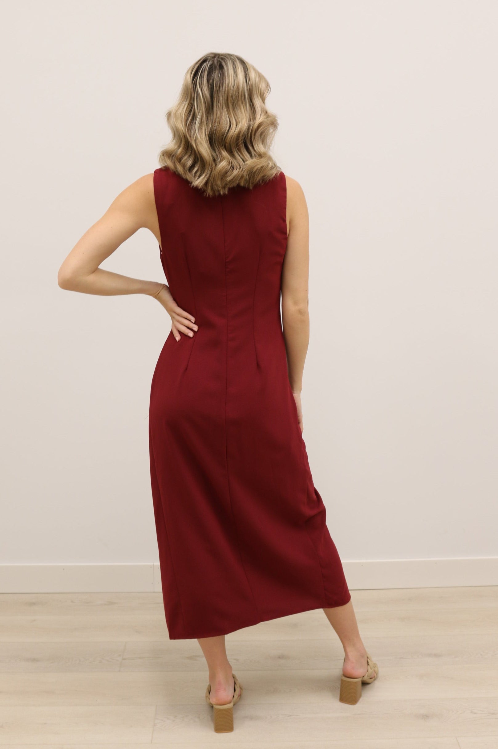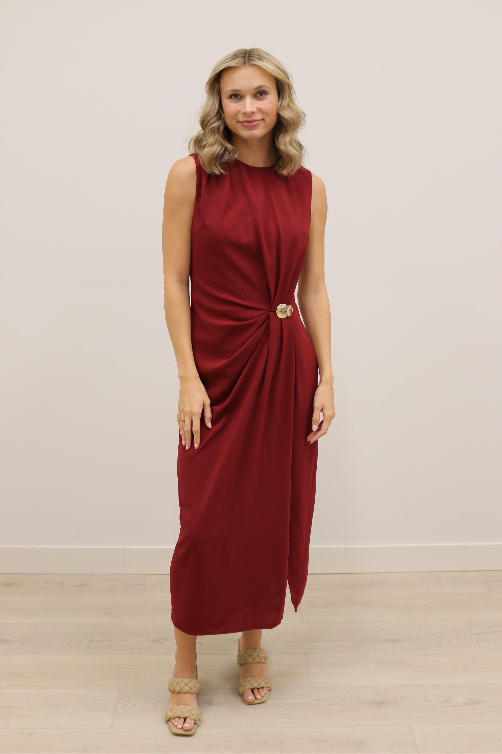 Balina Gold Hardware Draped Sleeveless Solid Midi Dress - Burgundy