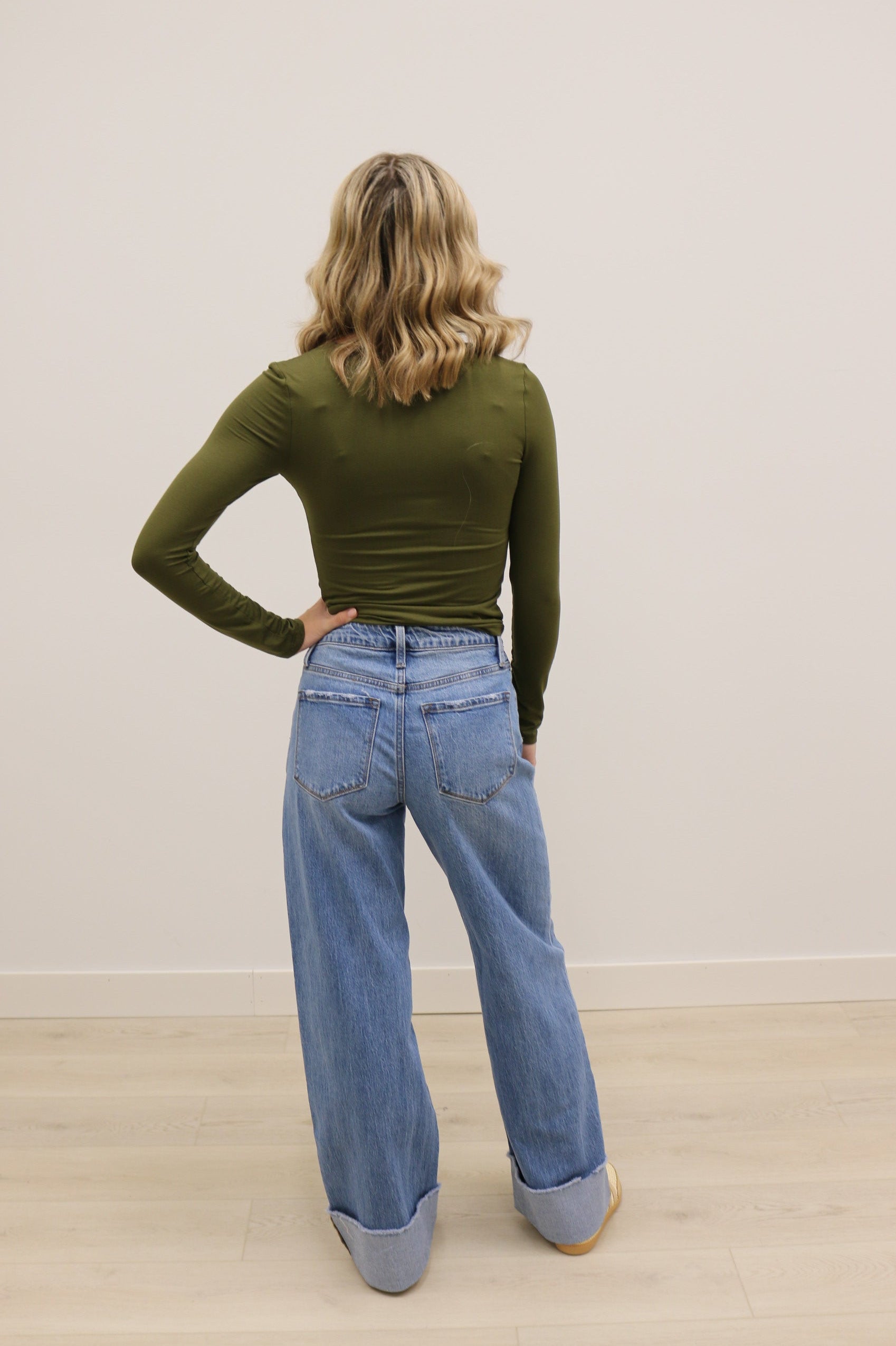In chic olive green, it’s the perfect base layer for any look—wear it solo or under blazers, cardigans, and coats for easy elevated style.