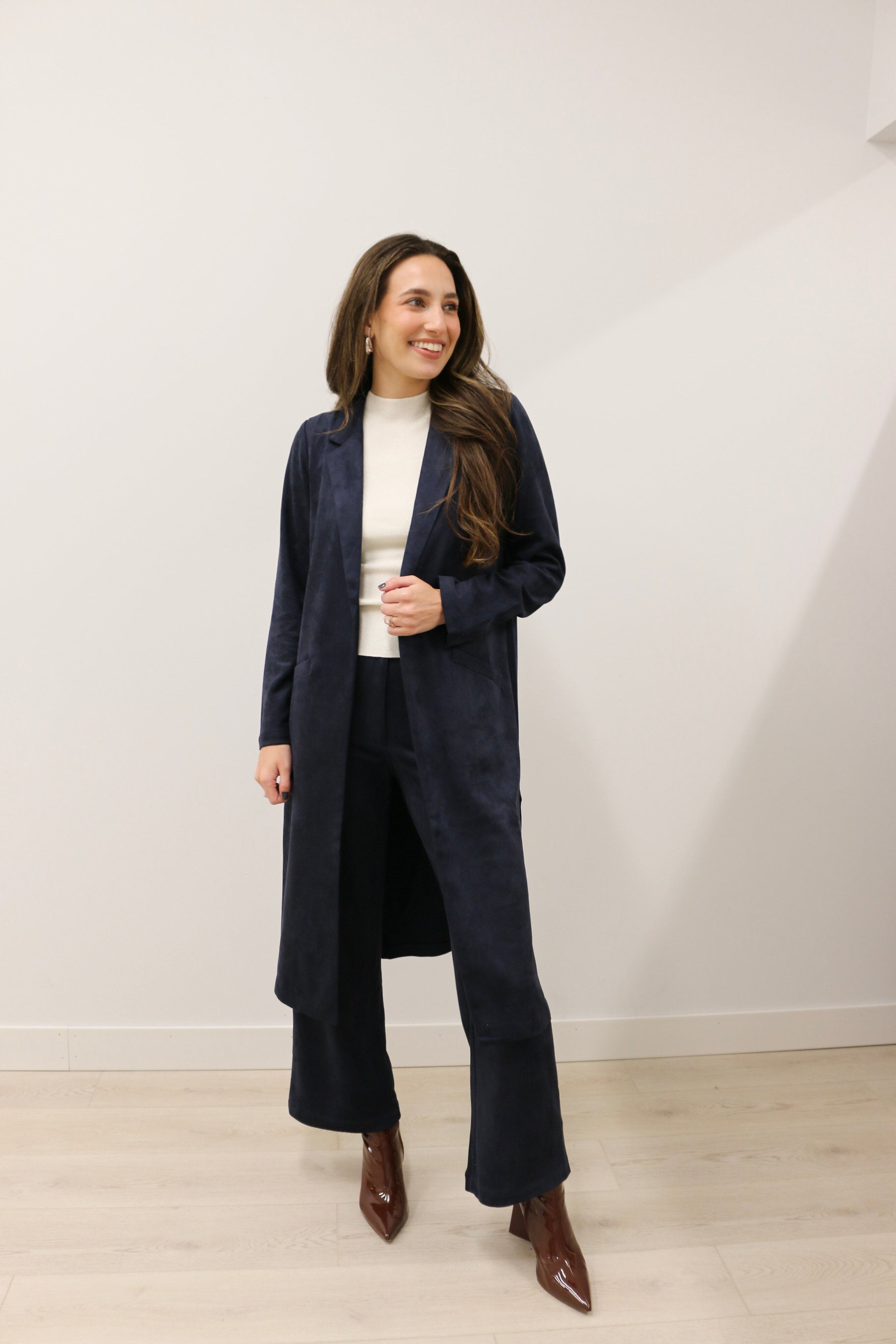 Lana Suede High Waisted Wide Leg Pants - Deep Navy