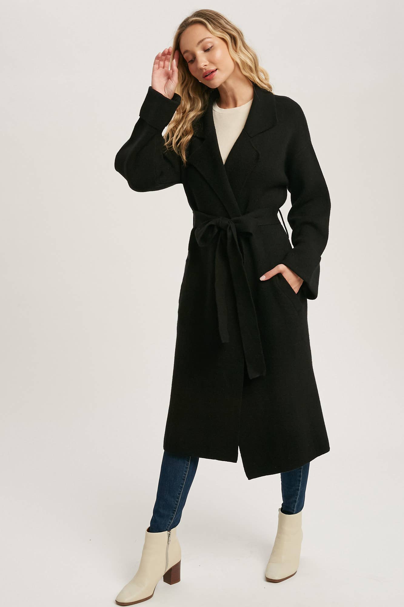 Leah Long Sleeve Heavy Knit Trench Coat - Black