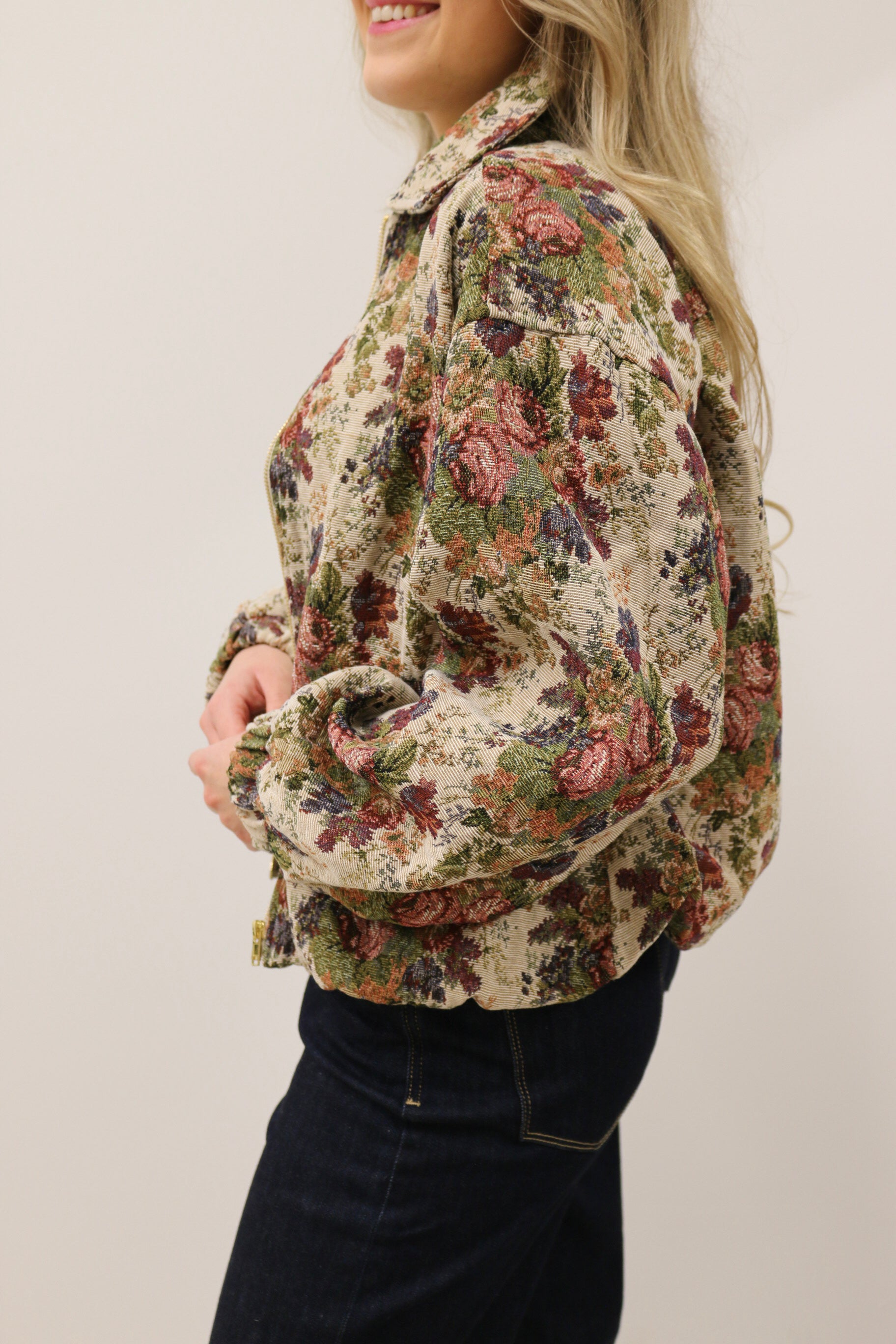 Marisol Vintage Rose Tapestry Zip-up Bomber Jacket - Multi