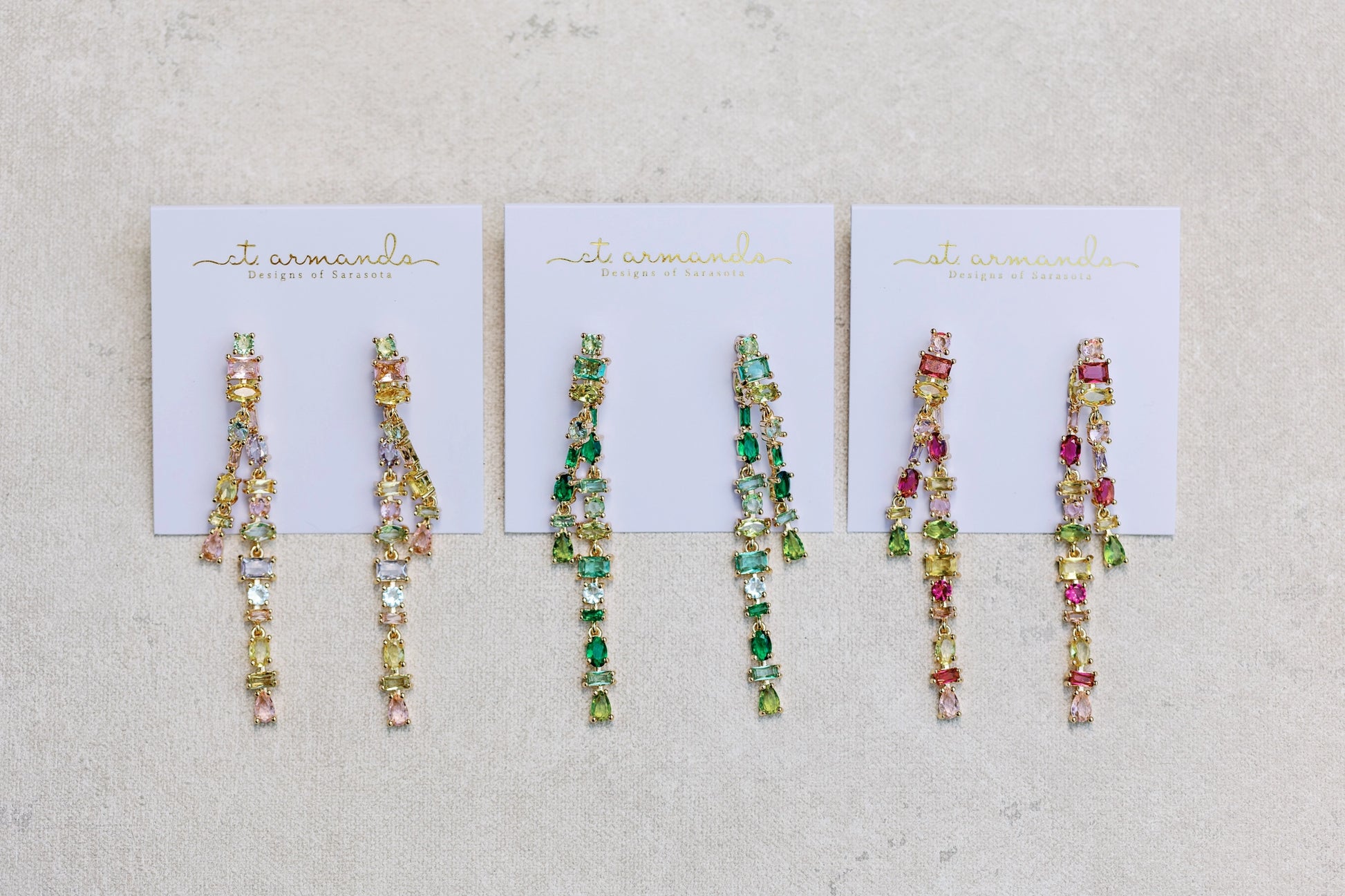 Ombre Crystal Layered Duster Statement Earrings - Jewel Tone