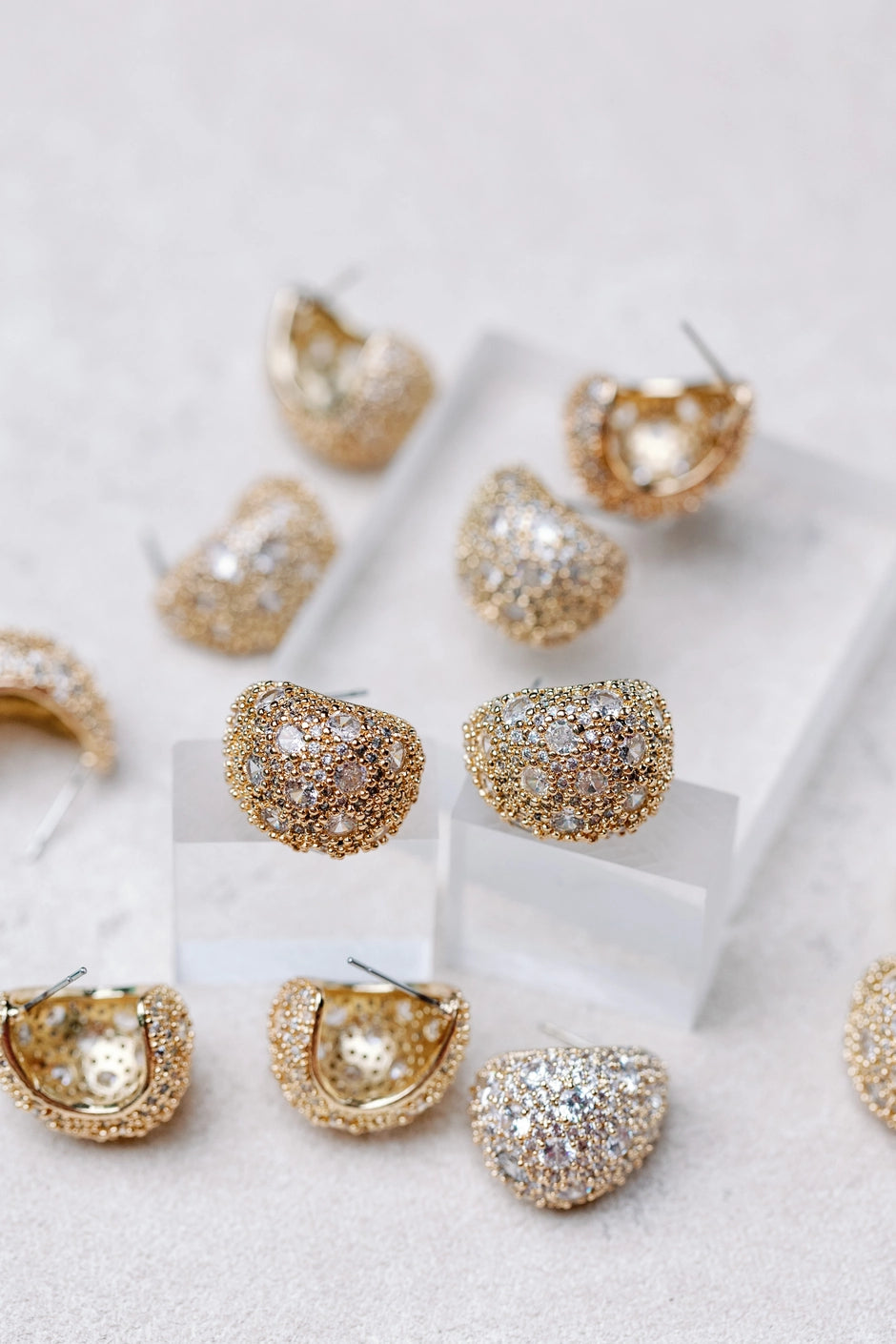 Pave Crystal Gumdrop Gold Post Back Earrings
