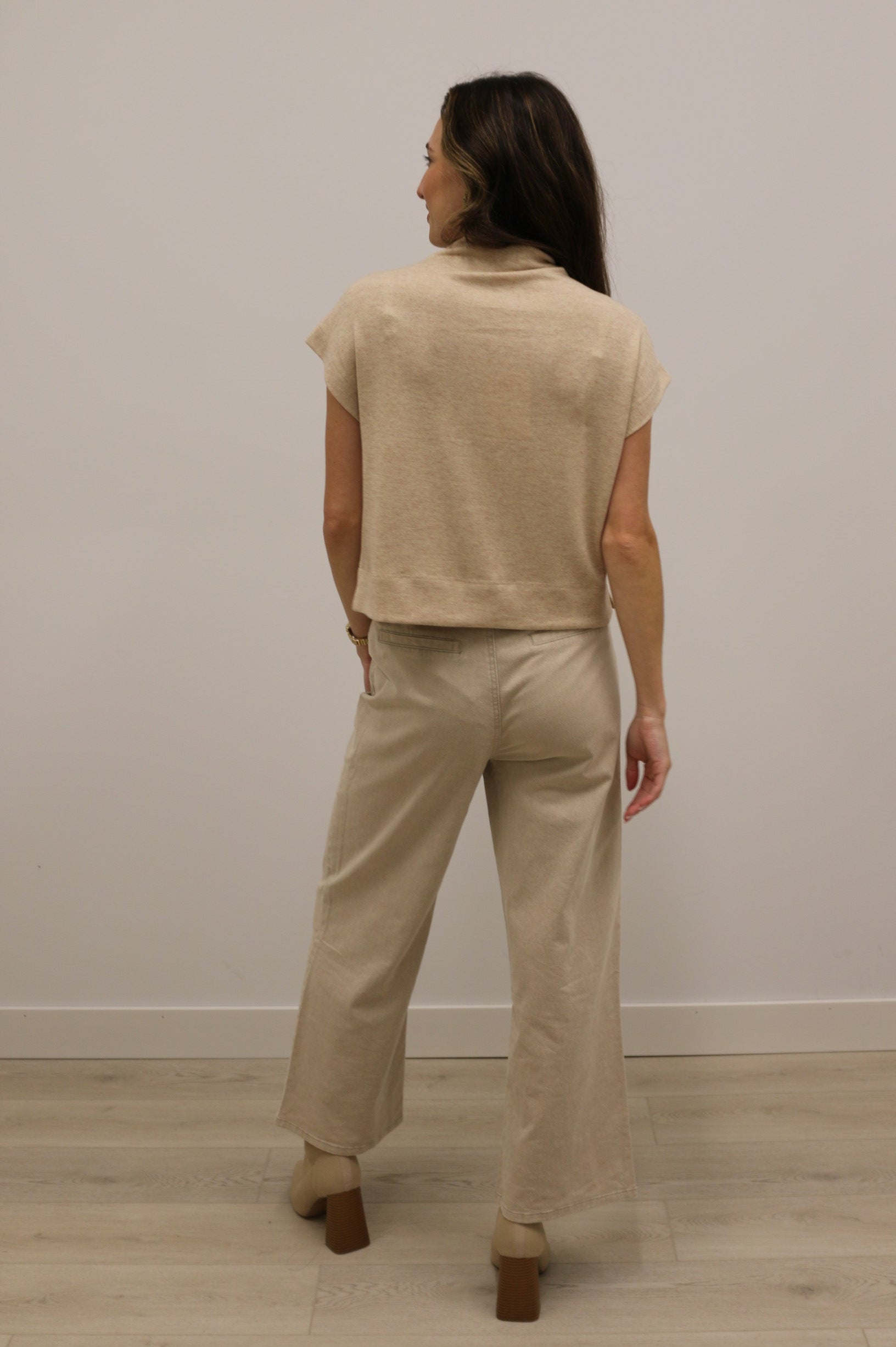 Reeves High Waisted Wide Leg Crop Pant - Khaki Stone