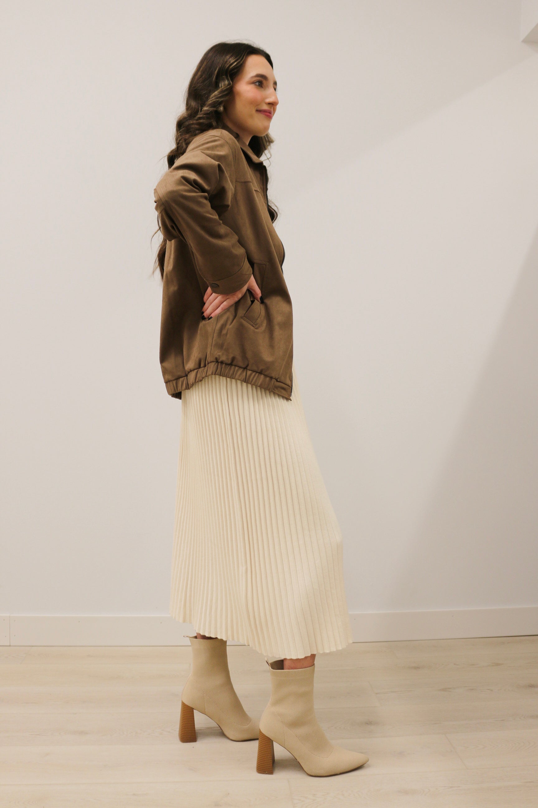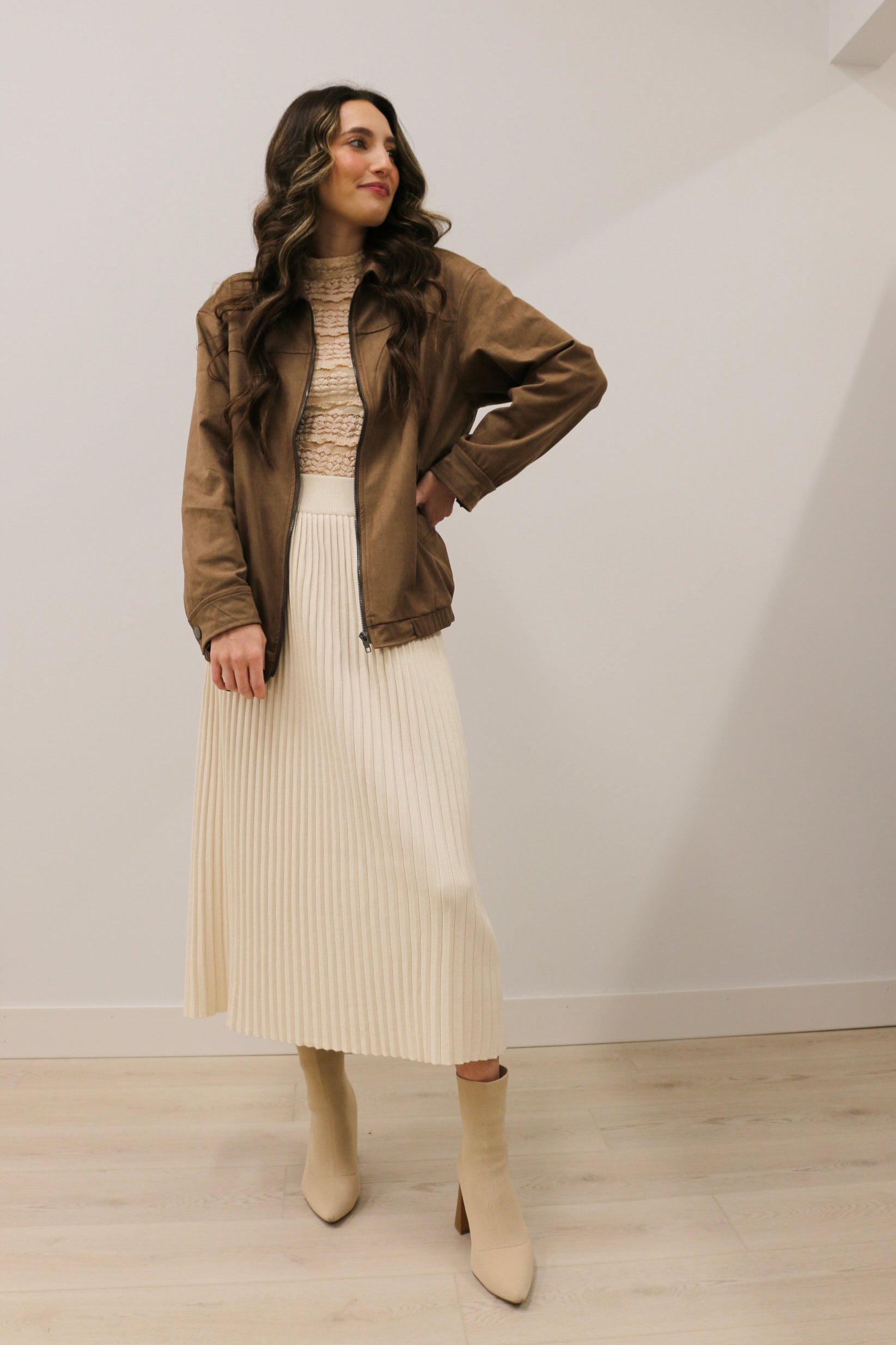 Sasha Suede Oversized Zip Up Bomber Jacket - Brown