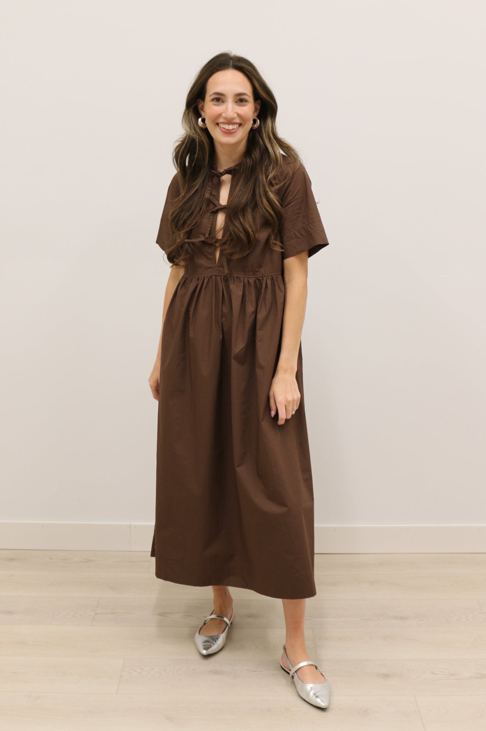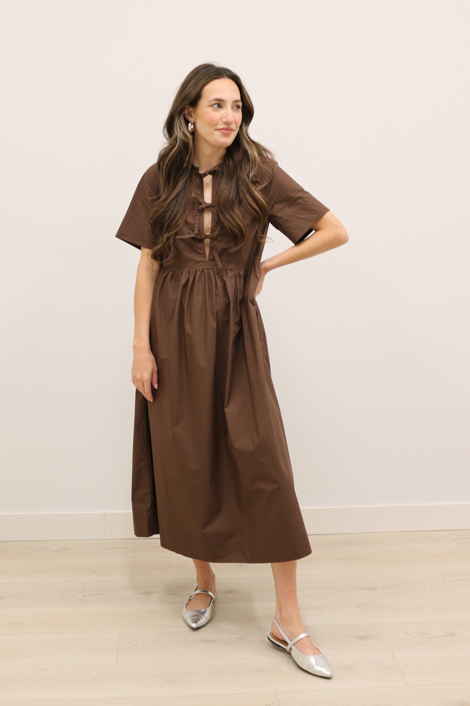 Stella Bow Front Relaxed Fit Midi Dress - Chocolate Brown