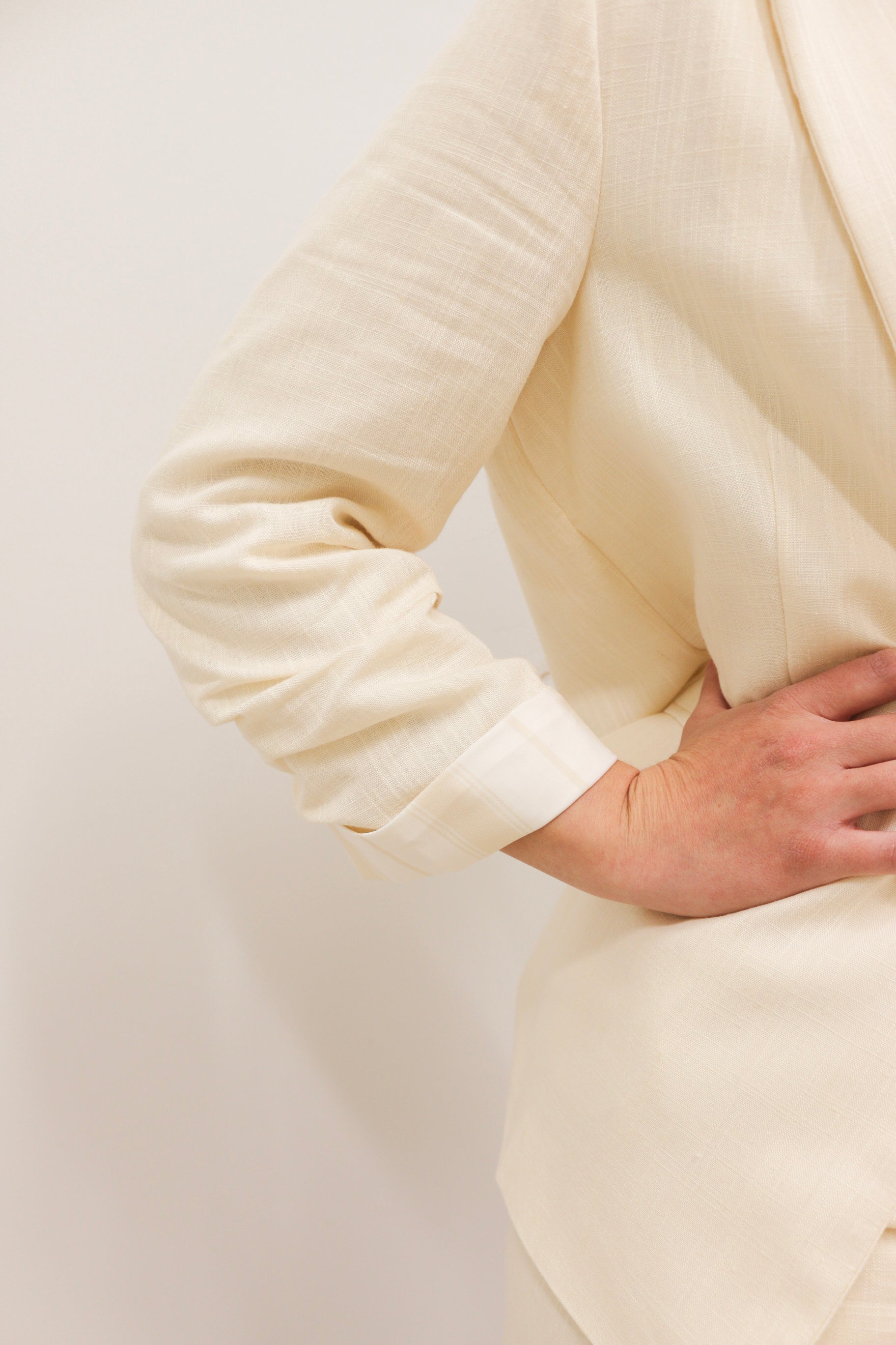 The Venice Cinched Sleeve Relaxed Blazer is the perfect blend of tailored polish and effortless style. Crafted from a textured linen-like fabric in a versatile ecru hue, this blazer offers a lightweight feel with a relaxed silhouette that’s easy to wear. The cinched sleeve detail adds a modern touch, while the soft stripe lining provides an extra layer of design detail. Pair it with the matching Venice shorts for a chic coordinated set or mix and match with denim and trousers for endless styling possibilities.