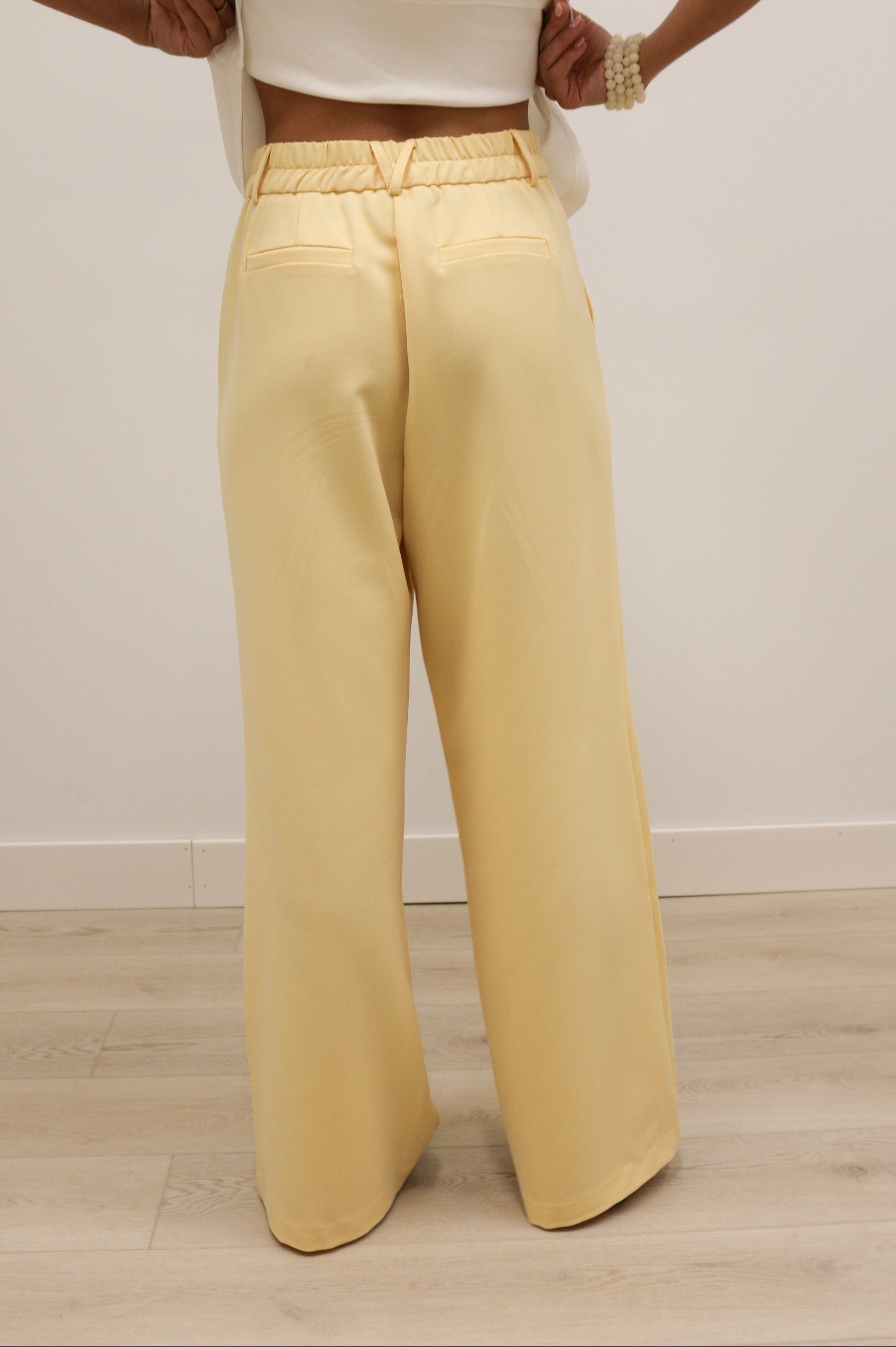 Zuri High Waisted Wide Leg Trouser Pants - Butter Yellow